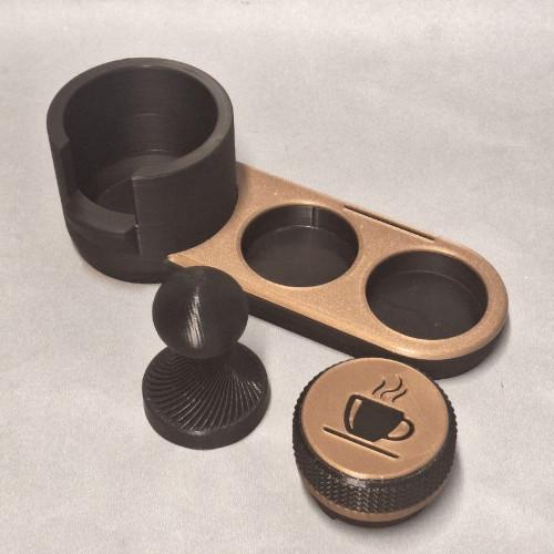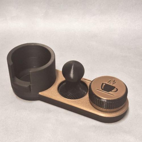 ESTACI脫N DE CAFE PL脕STICO NEGRO OTZ PARA GRUPO, TAMPER Y DISTRIBUIDOR DE 58 MM